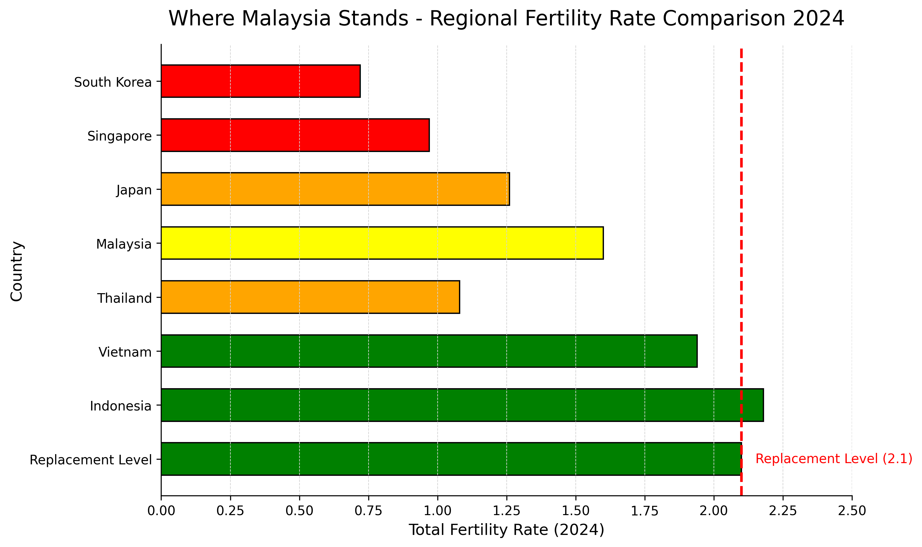 - Malaysia's Total Fertility Rate crashed to 1.6 in 2024, down from 1.7 in 2023—marking the steepest decline in Southeast Asian history