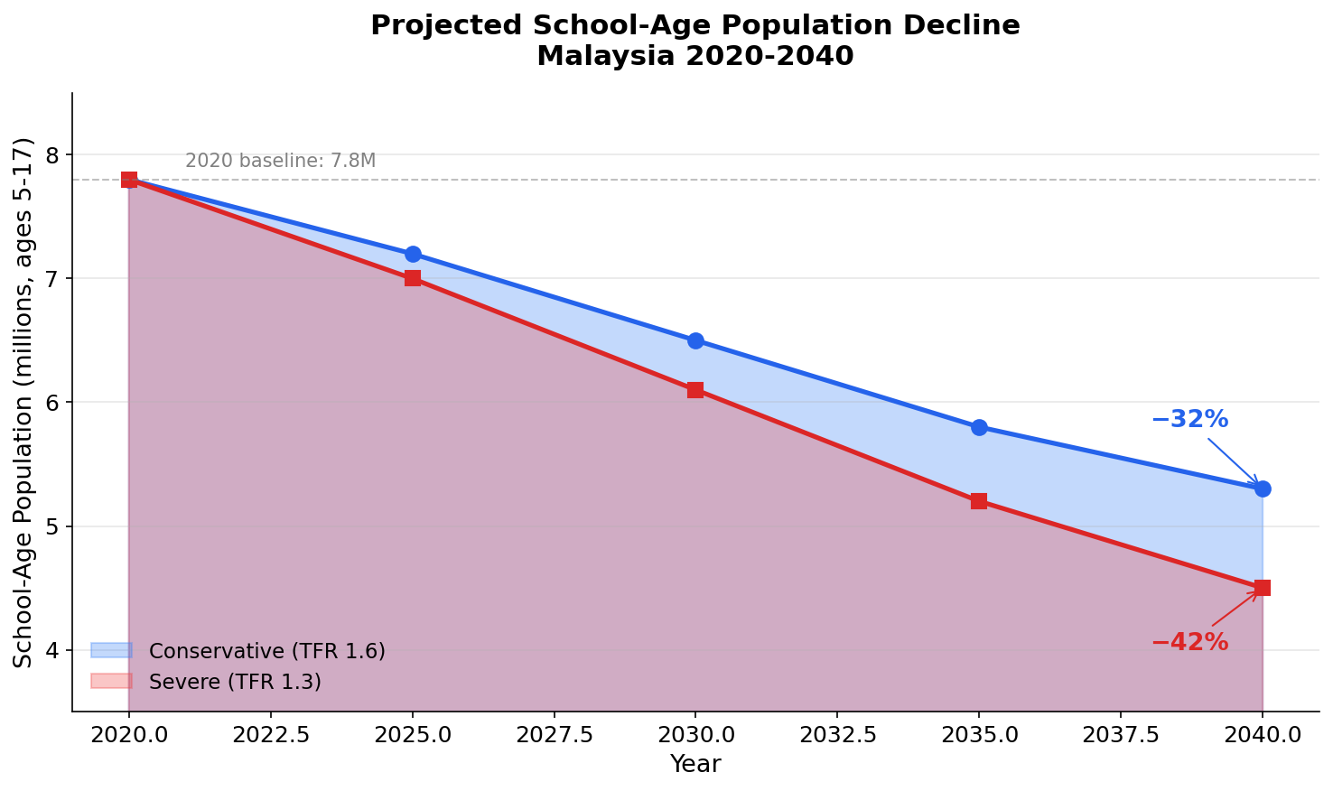 These aren't abstract numbers—they represent fundamental changes to Malaysia's educational infrastructure needs, teacher employment, and school viability.